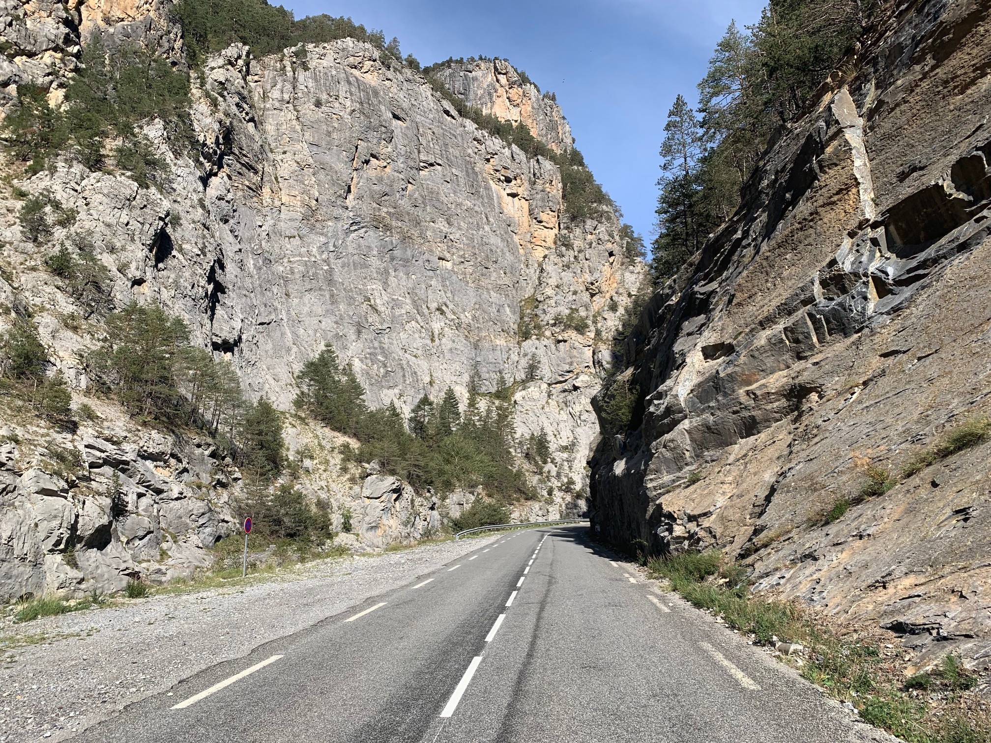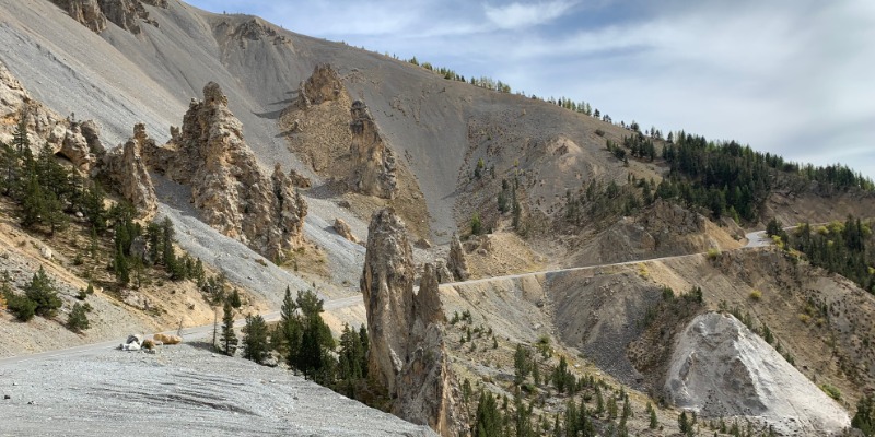 Die overtuiging krijg ik des te meer in de laatste kilometers, wanneer de bomen meer en meer plaatsmaken voor de iconische ‘casse déserte’ van deze waanzinnige col. Groen is hier nauwelijks te bespeuren, steen en grind des te meer. En enkele stalagmieten. Zeker de paar honderd meter die op 2,5 kilometer van de top licht dalen, zijn een lust voor het oog. Door de dalende weg ga je hier eigenlijk te hard om te ervaren hoe mooi het hier is.