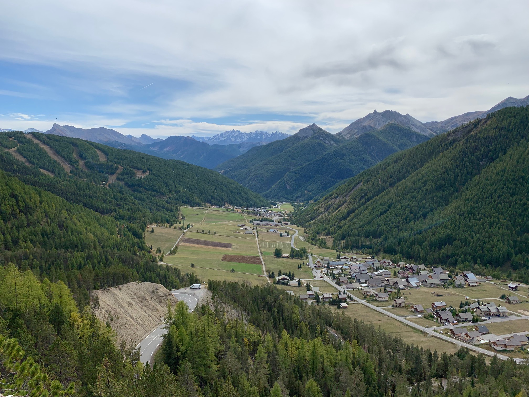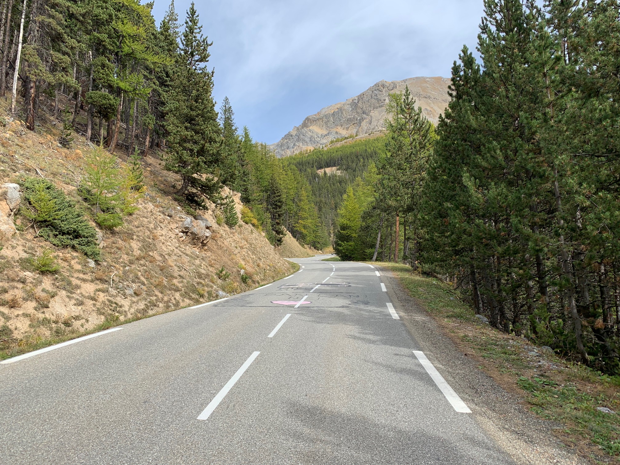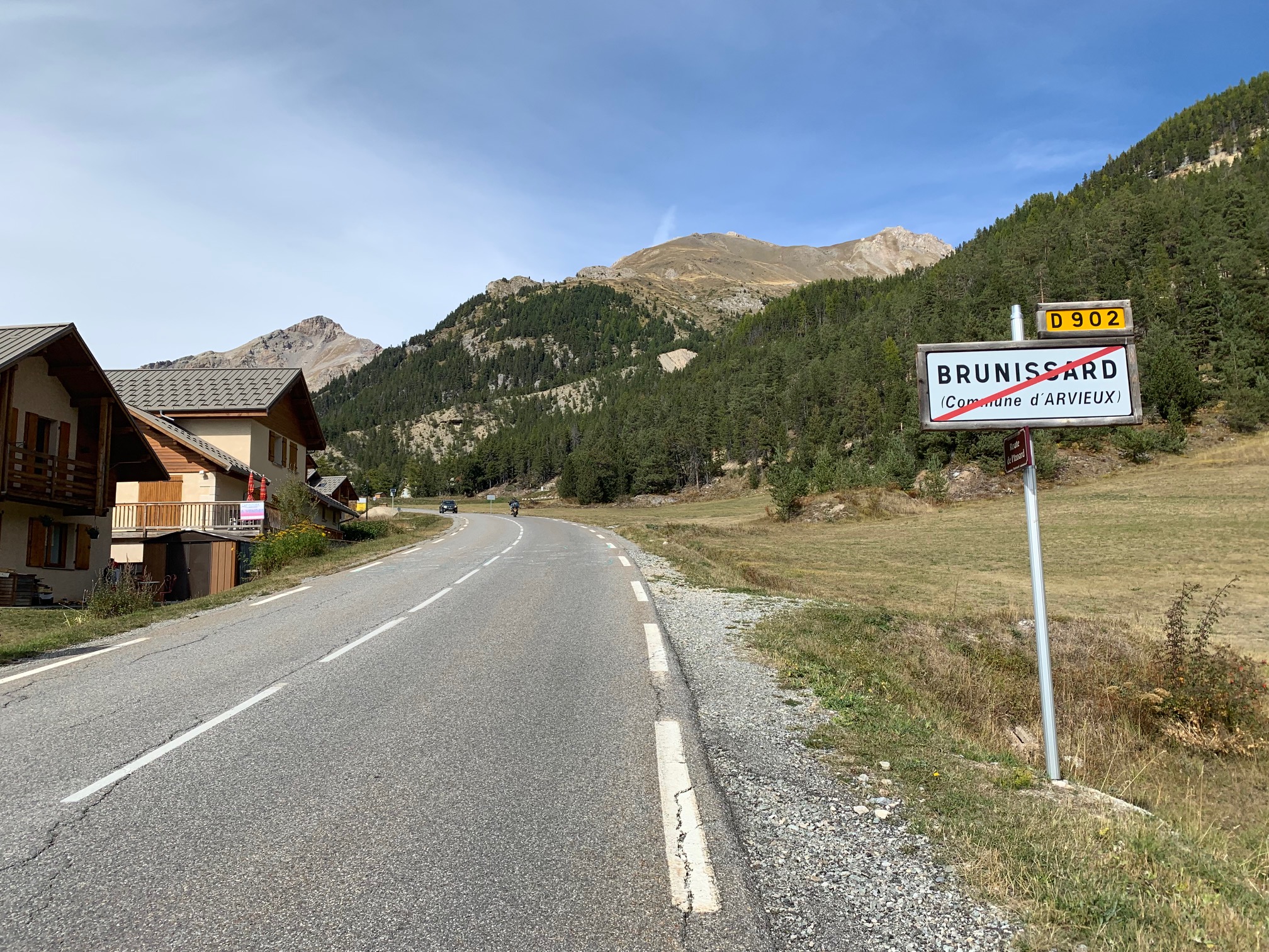 De eerste kilometers vanaf dat punt zijn dan wel niet zo mooi als de eerste 15, maar ook hier is het heerlijk fietsen. In de groene omgeving melden zich een aantal bergdorpjes, die gelukkig véél minder toeristisch en lelijk zijn dan de wintersportdorpjes op de Col de Vars. En: de stevige percentages houden je tussen deze dorpjes echt wel zoet. Het laatste dorpje Brunissard staat me nog helder voor de geest. De weg gaat hier al lange tijd kaarsrecht rechtdoor en voor je gevoel ook kaarsrecht omhoog (al schommelen de percentages hier in werkelijkheid tussen de acht en tien procent). Na Brunissard gaat dat daar nog een klein schepje bovenop, zéker voor het gevoel. Zwoegen maar!